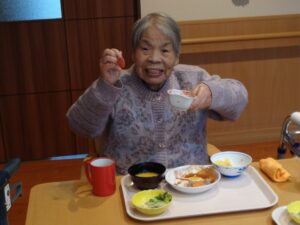 さて、みやびの郷では昼食時にクリスマスメニューを提供させていただきました。