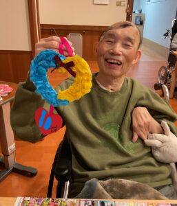 居室のドアに飾りユニットがパッと明るくなっています。