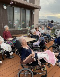 ここ最近、急に秋らしくなってきましたが、白花・紺碧ユニットでは屋上のテラスで