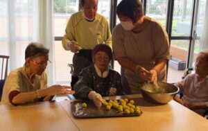 9月に十五夜と題して皆さんと秋の味覚のさつまいもを使用しスイートポテト作りを開催しました。