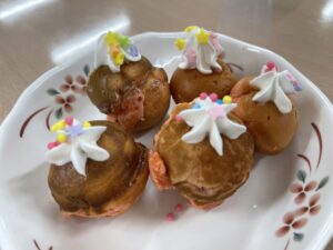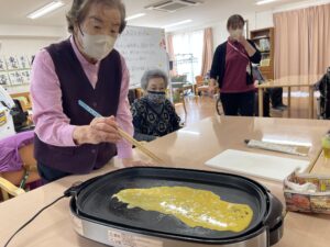 ホットプレートが広いので薄く広げるのに少しコツが要りましたが、皆さん上手に焼いてくださいました😊