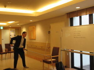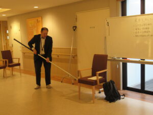 不審者がいた際の対処法で、刺股の使用方法なども指導してくださいました。