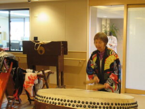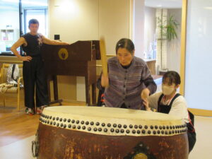 見たことのない大太鼓を持ってきてくださり、ご利用者様も