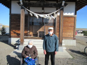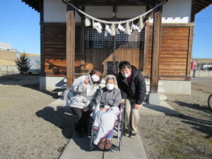 天気の良い日に、神武天皇社へご利用者と徒歩で初詣参拝に行きました。