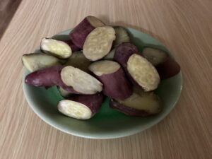十五夜のイベントでは蒸かしたサツマイモをおともにお月見を行いましたよ!