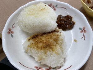 同時進行でホットプレートでおにぎりを焼きます。今回のお味は味噌!香ばしいにおいによだれが垂れちゃいそうです😚