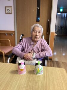完成した雛人形をご覧になられたご入居者の皆さまは「小さくて可愛いねー!」と作り上げた雛人形に愛着が湧いたご様子でした!