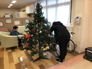 クリスマスツリーの飾りつけをご利用者の皆様と行いました😊