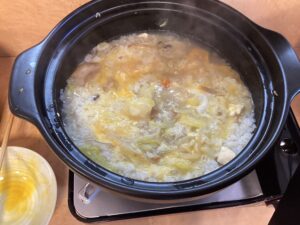 鍋の締めは卵雑炊でした!卵とお出汁が絡まってとても美味しく出来上がりました!