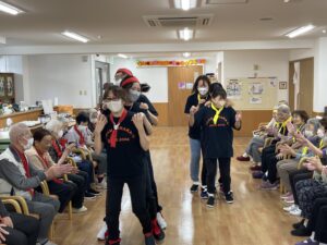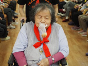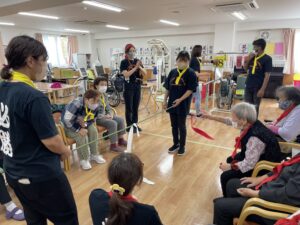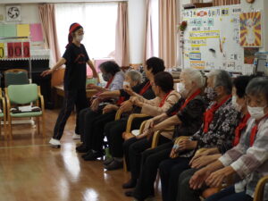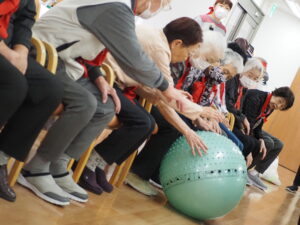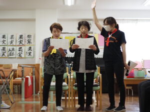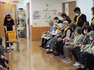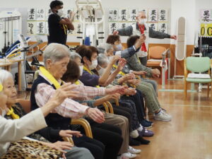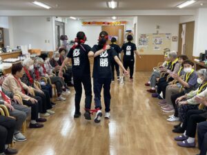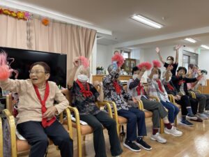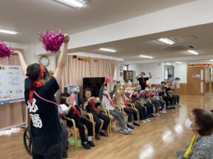 職員の337拍子に合わせて皆さんでポンポンを振りました。