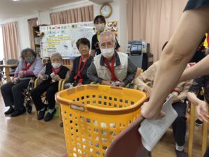 最後は職員競技です!引いたくじに書かれたお題のものをデイフロアから探し出して走ります!