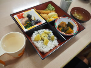 かぼちゃの煮つけやさつまいもご飯など秋の味覚満載で大満足でした!皆さんほぼほぼ完食です😋
