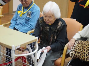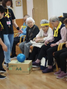 二つ目の競技は『なんでも送り』です。隣の席の方に落とさないように色々なものを送っていきます!