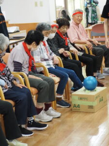 難しかったですが、職員のアシストのおかげで無事にゴール出来ました。どちらのチームが早かったでしょうか!秒数の短かったほうが多くの点数をもらえます☺️