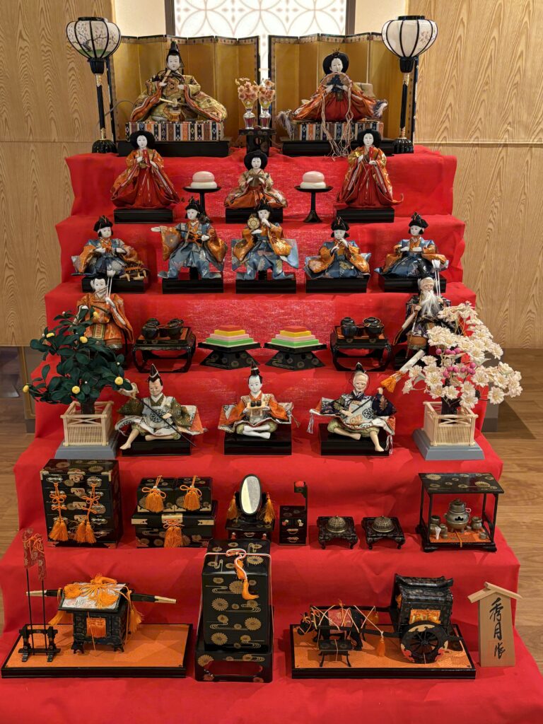 こんにちは、万葉の郷です! 3/3は桃の節句、雛祭りです✨👏 ロビーには7段飾りがお披露目されました。 …