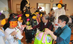 「Trick or Treat!」の合言葉をきっかけに、ご入居者からお菓子や絵本のプレゼント。