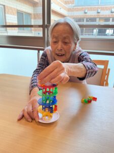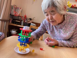 手先・バランス感覚・集中力を鍛えるグラグラタワーゲームに挑戦しました。