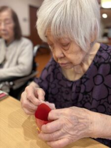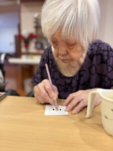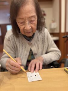 初めてのレクリエーションは、サンタさんの塗り絵をしていただきました。