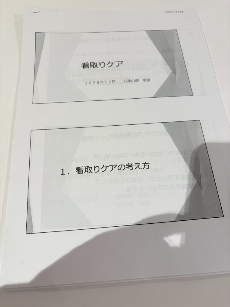 万葉の郷 内部研修~看取りケア~ みなさんこんにちは。万葉の郷です。 万葉の郷では、今月看護による看取…