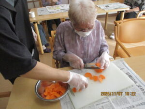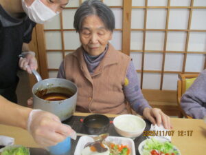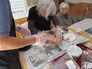 入居者の皆様がそれぞれでお手伝いをして下さり、菜の花中に美味しい香りが広がり食欲がそそられる状況でした(^^♪
