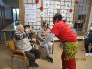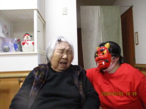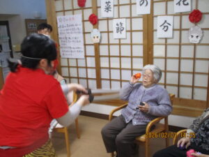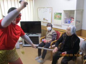 皆様、鬼に向かい豆まきをされ、季節のイベントを楽しまれました(#^^#)