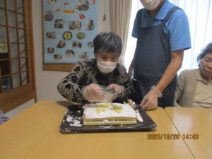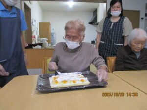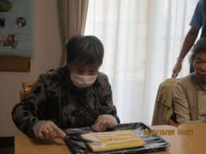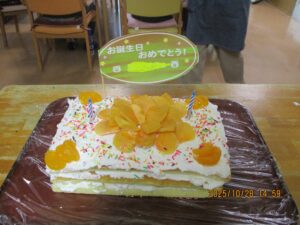 利用者の方のお誕生日を手作りケーキ🎂とお祝いの色紙をお渡しし、お祝いをさせて頂きました(^^♪