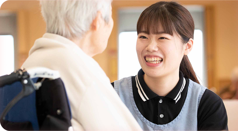 食事・入浴・排泄などの身体介助をはじめ、日々の見守りやコミュニケーション、レクリエーションの実施などを通じて、一人ひとりの生活に寄り添ったケアを行います。